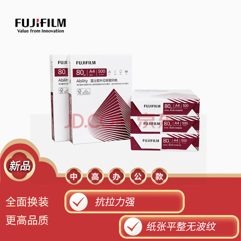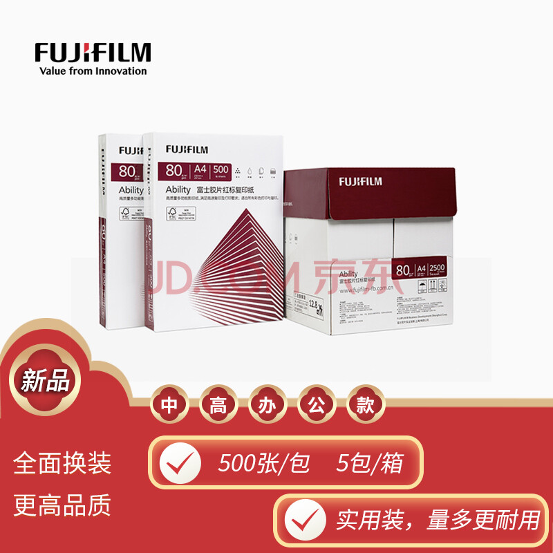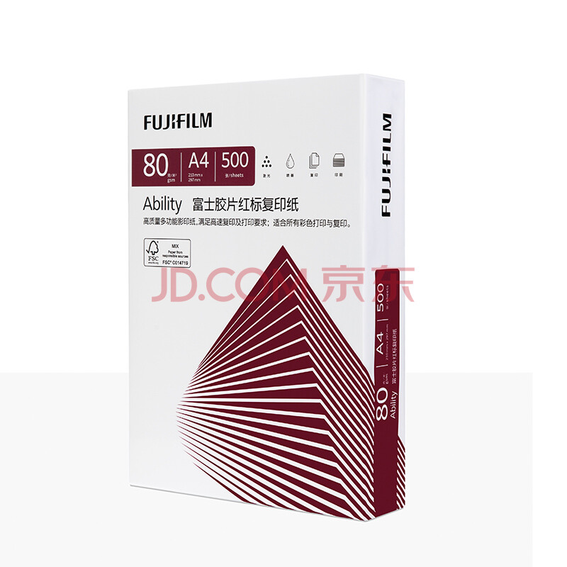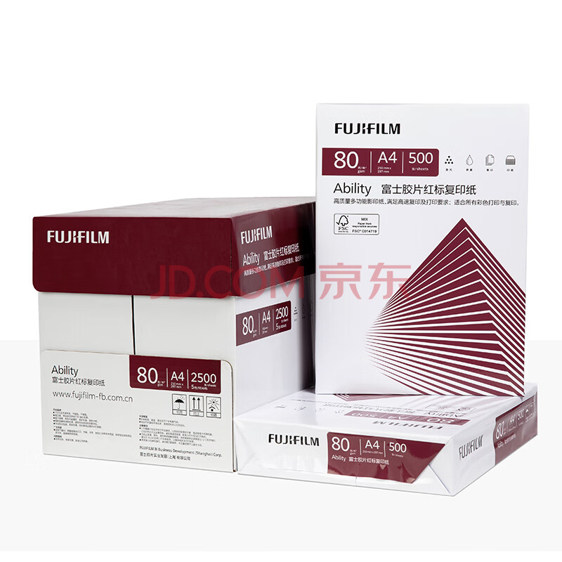 商品相册:富士(FUJIFILM)Ability 红标80g A4复印纸 500张/包 5包/箱(2500张) 打印纸 白纸a4 整箱第