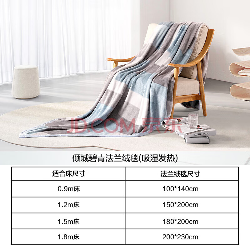 商品相册:水星家纺毛毯法兰绒毯保暖毯子铺床盖毯可机洗约3.25斤200×230cm第