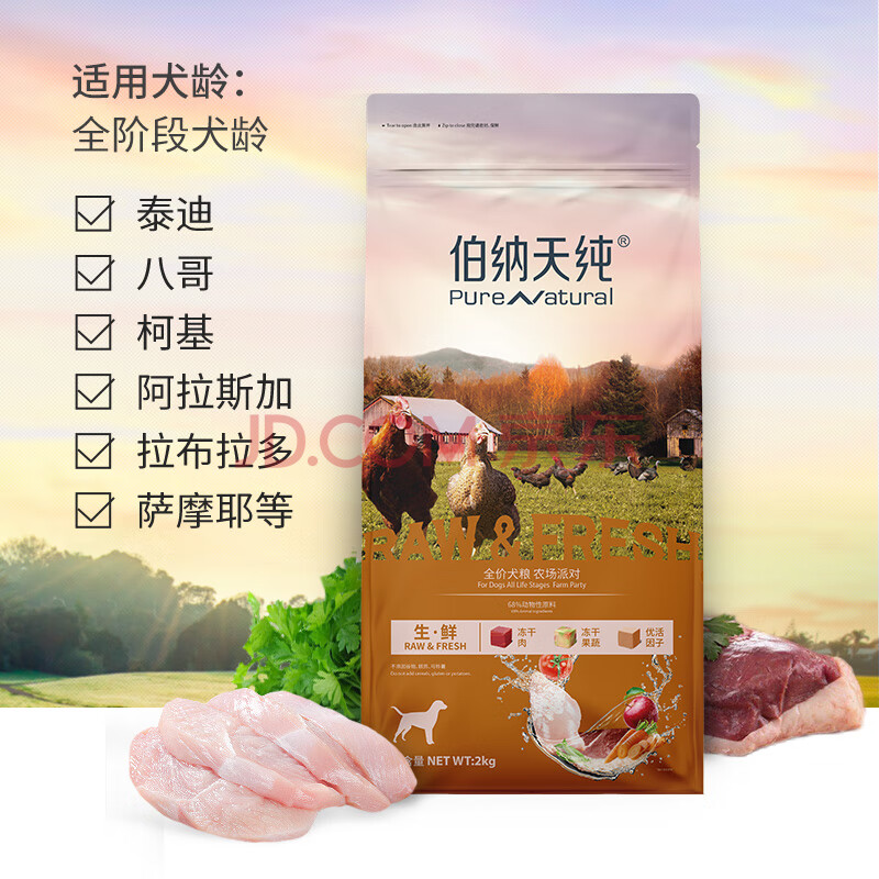 商品相册:伯纳天纯生鲜1.0小型犬中大型犬粮农场鸡肉味泰迪比熊幼犬成犬粮2kg/4斤第