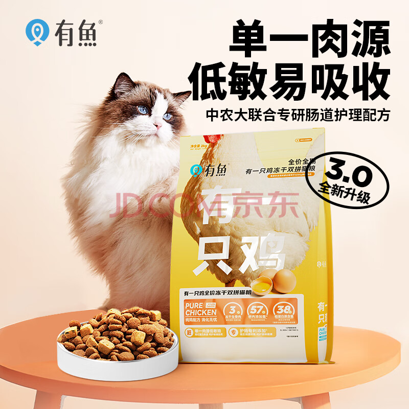 商品相册:有鱼鸡肉冻干双拼成幼猫全价天然无谷猫粮 有一只鸡3.0升级款 2kg第