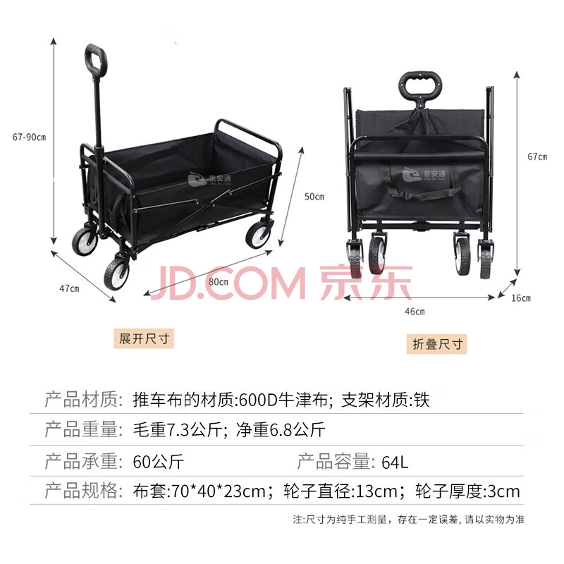 商品相册:京安通 户外露营车折叠推车野营车 便携式折叠露营推车摆摊车 黑色第
