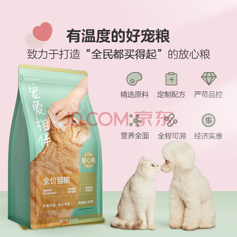 商品相册:网易严选宠爱相伴全价猫粮 实惠宠物主粮成幼猫爱心公益 美毛护肠胃 1.8kg第