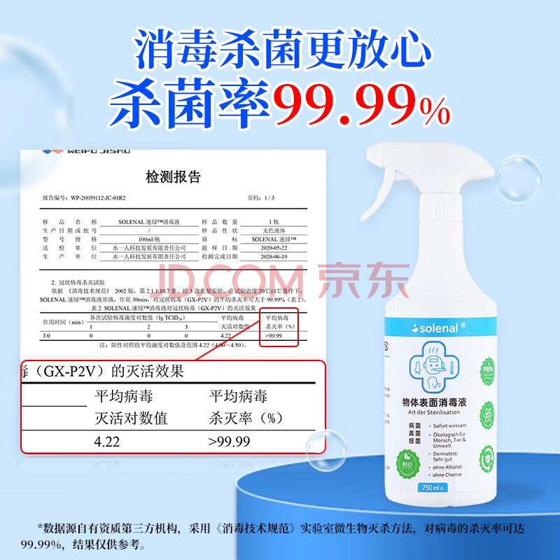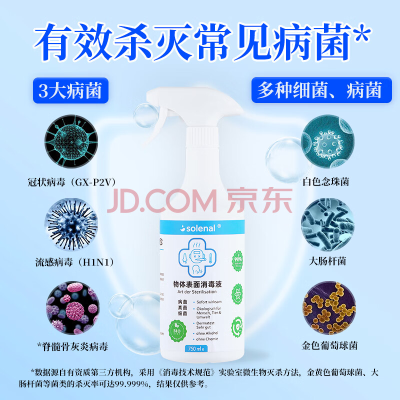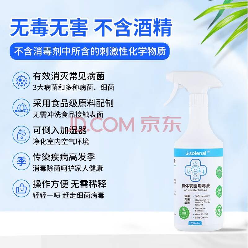 商品相册:Solenal次氯酸消毒液750ml*2家居除菌消毒喷雾厨房门把手儿童玩具消毒水第