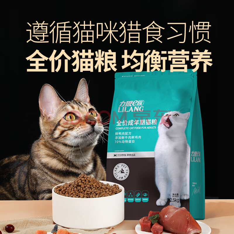 商品相册:力狼(LILANG)猫粮e族宠物主粮鸭肉鲜肉粮全价成猫通用天然粮2.5kg第