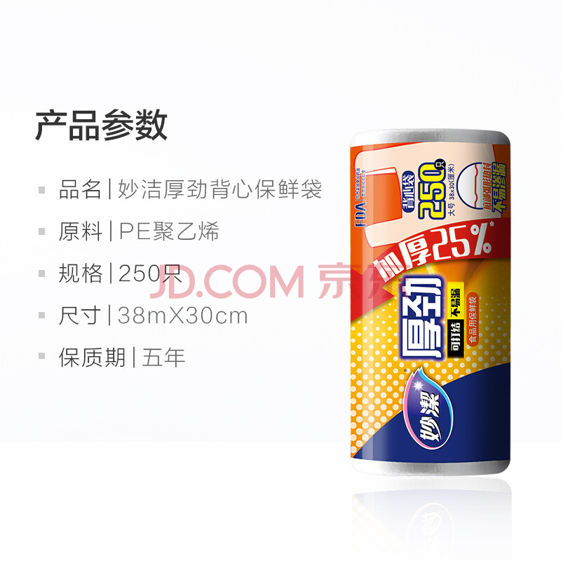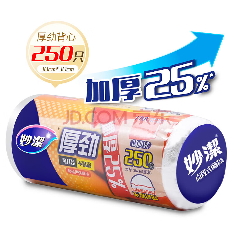 商品相册:妙洁 厚劲系列背心式保鲜袋大号250只第
