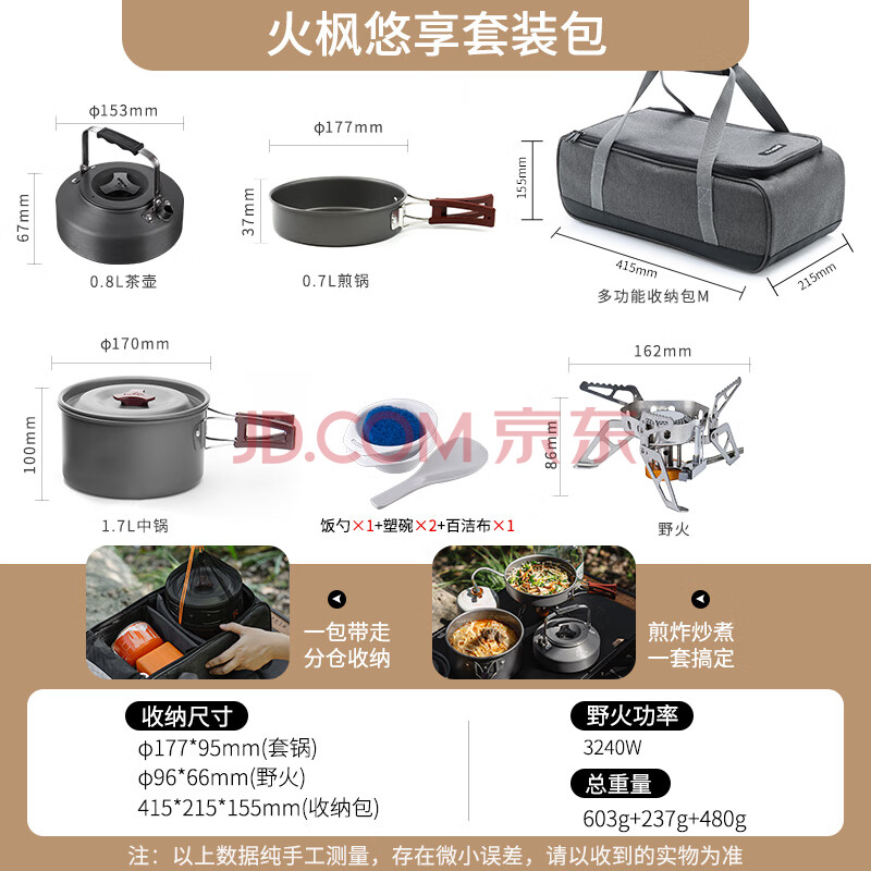 商品相册:火枫(FIRE-MAPLE)悠享户外露营套装包204套锅围炉煮茶烧水壶 炉具野炊锅具2-3人第1张/共9