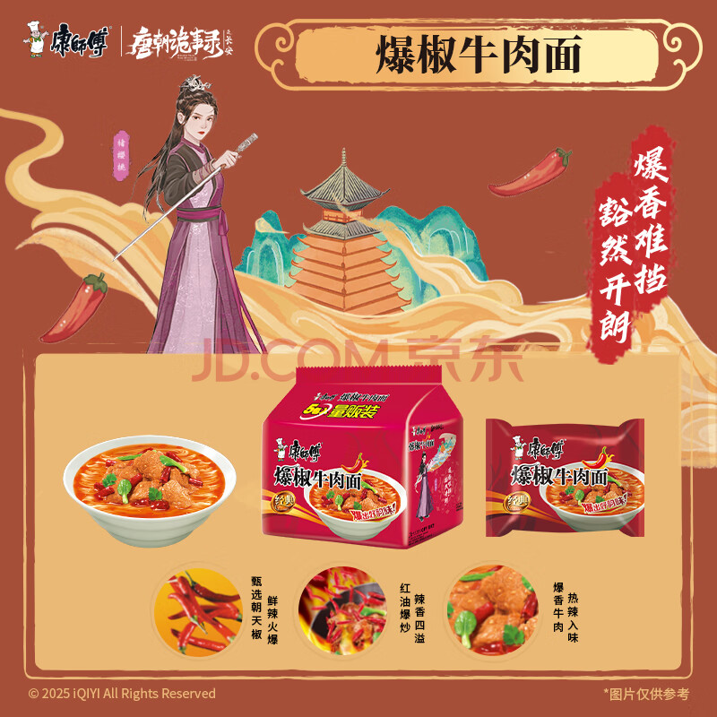 商品相册:康师傅 方便面 经典爆椒牛肉面五连包103g*5 泡面袋装速食 方便食品第