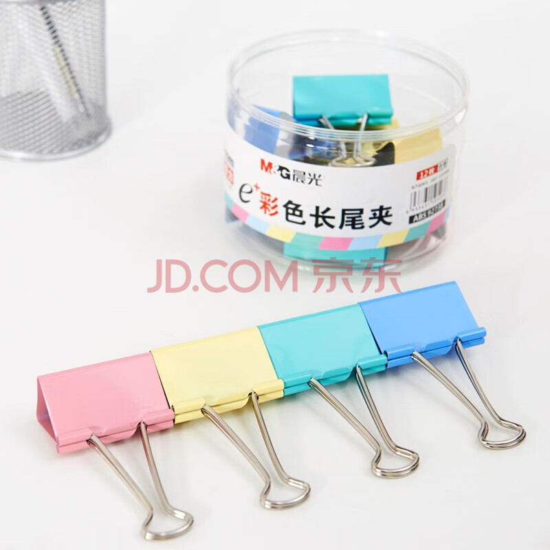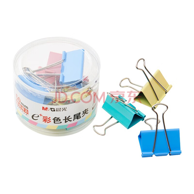 商品相册:晨光(M&G)长尾夹ABS92738文具50mm彩色长尾夹 金属票据夹 Eplus系列办公燕尾夹 12只/罐第