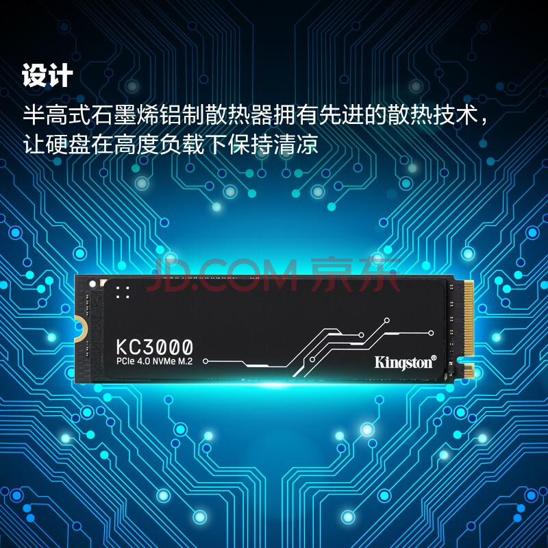 商品相册:金士顿(Kingston)2TB SSD固态硬盘 M.2接口(NVMe PCIe 4.0×4) KC3000 读速高达7000MB/s AI 电脑配件第