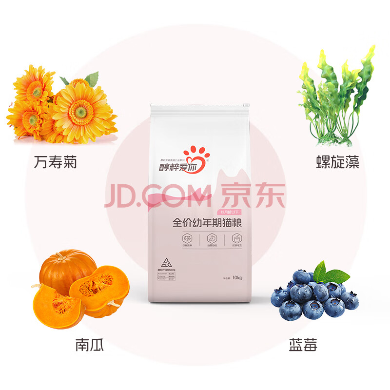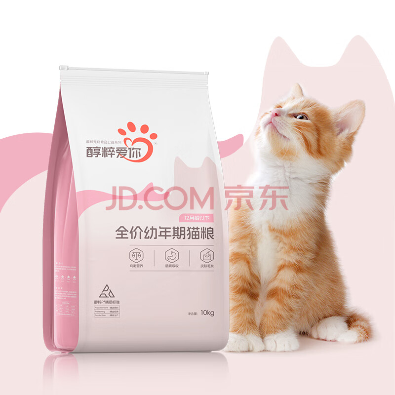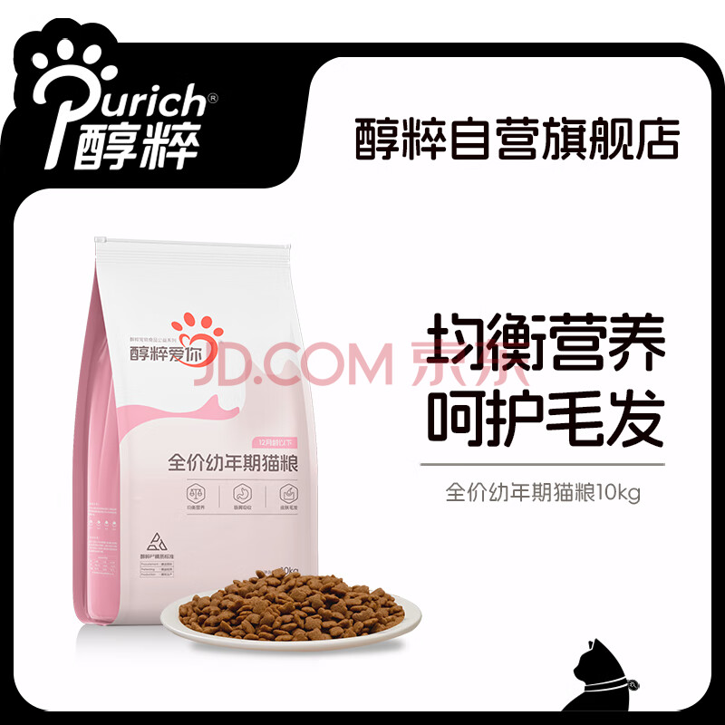 商品相册:醇粹猫粮10kg 幼猫粮宠物奶糕 全价营养敏感肠胃室内猫干粮20斤第