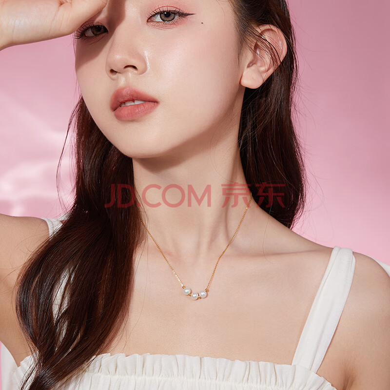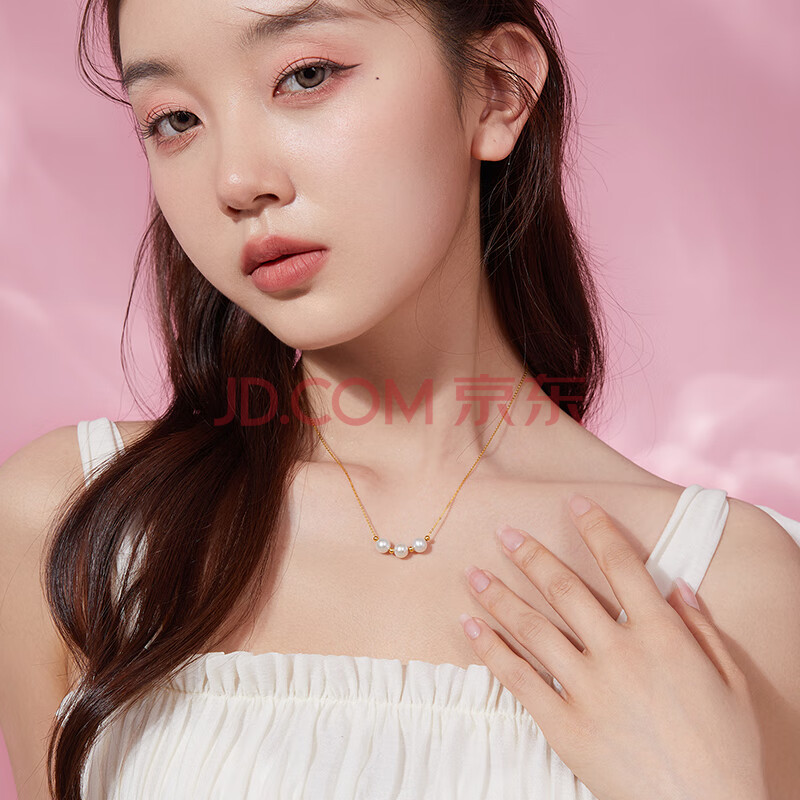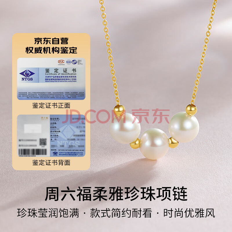 商品相册:周六福黄18K金项链女 珍珠项链吊坠生日礼物 X0610520 约40+5cm第