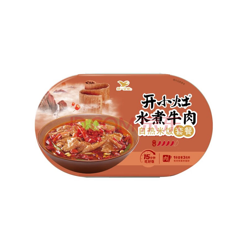 商品相册:统一 开小灶 自热米饭 水煮牛肉 270克/盒新老包装随机发货第