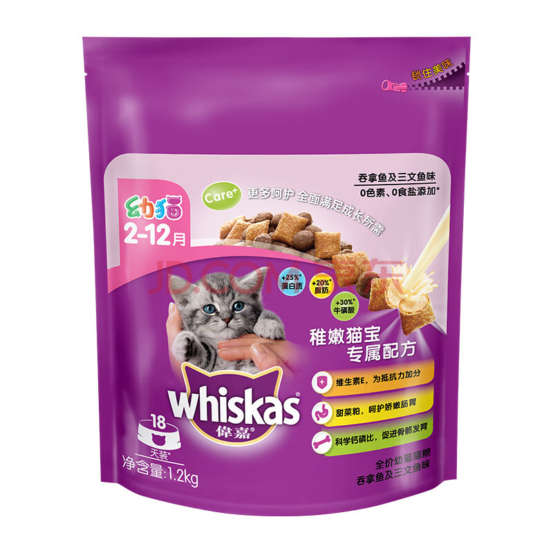 商品相册:伟嘉幼猫猫粮1.2kg吞拿鱼味布偶蓝猫橘猫加菲英短猫咪夹心粮全价粮第