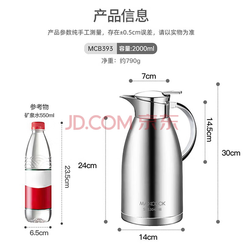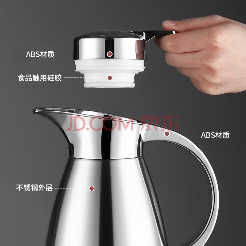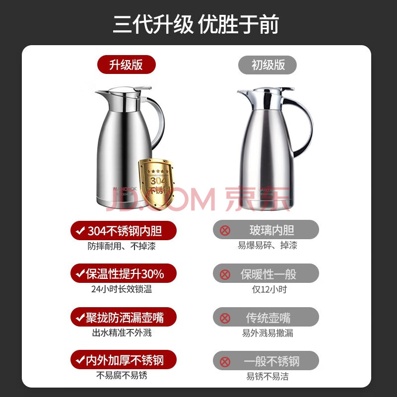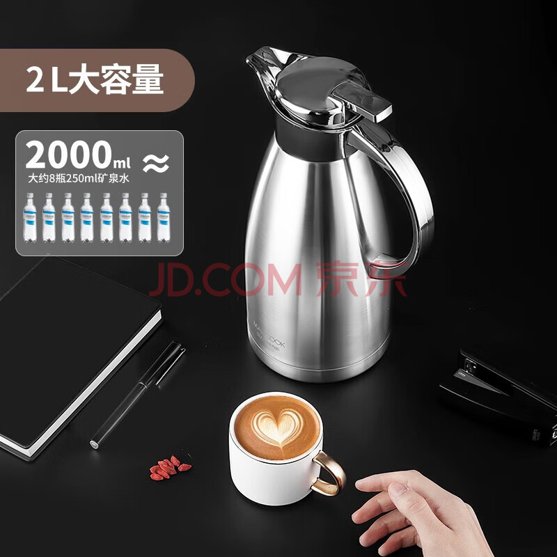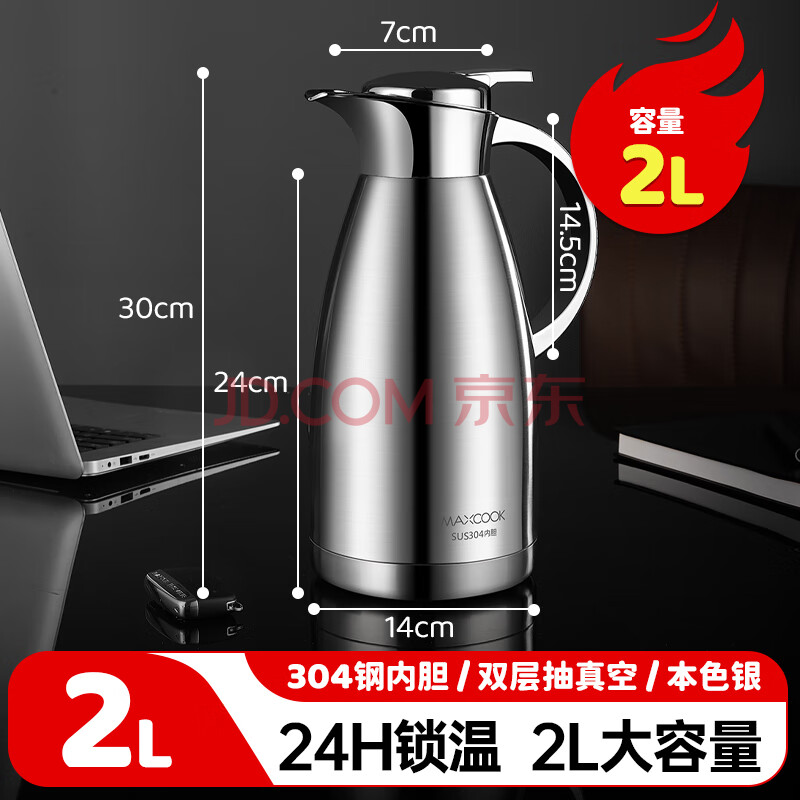商品相册:美厨(maxcook)保温壶 304不锈钢真空热开水瓶暖壶家用咖啡壶大容量2L本色MCB393第
