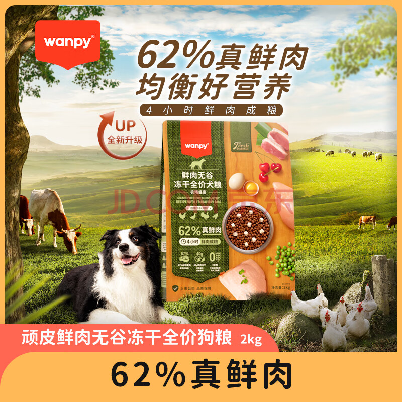 商品相册:顽皮(Wanpy)鲜选鲜肉无谷全价狗粮成犬幼犬双拼冻干通用型狗粮2kg第