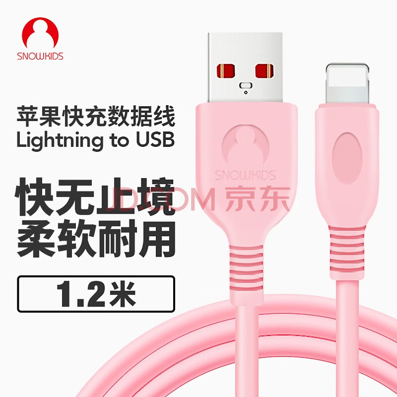 商品相册:Snowkids苹果数据线iphone充电线快充大粉1.2米适用iphone13/12/SE/6/11Pro/XsMax/XR/X/8/7电源线第