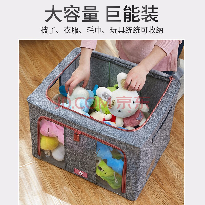 商品相册:山山 衣服玩具被子大容量收纳箱三视窗加粗钢架可折叠棉麻整理箱66升第