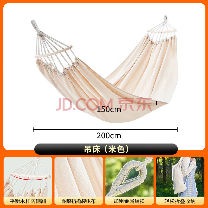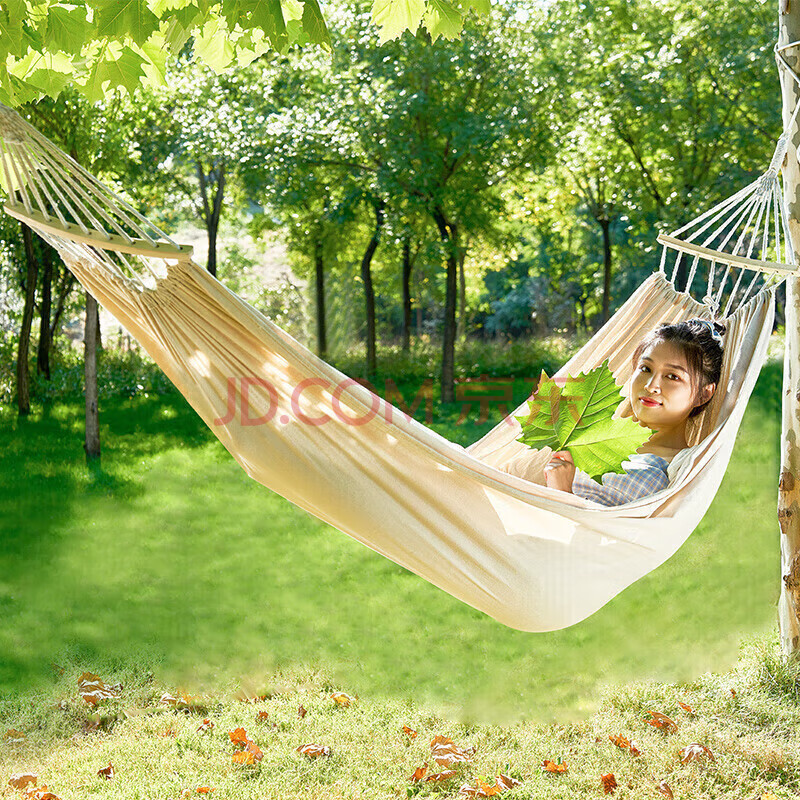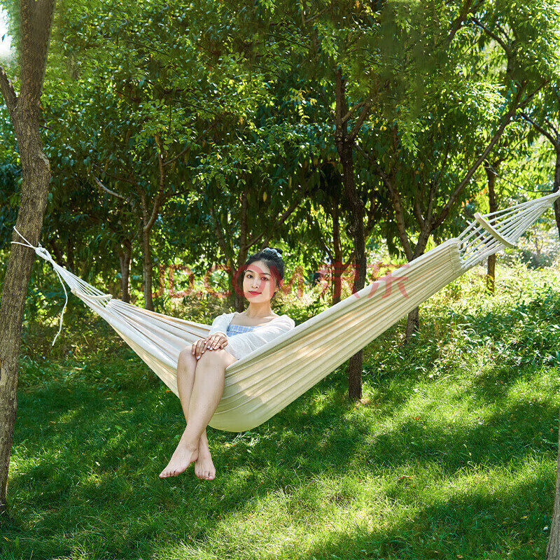 商品相册:尚烤佳(Suncojia)户外双人吊床露营休闲加厚加宽帆布防侧翻弯木室外野营秋千床第1张/共8