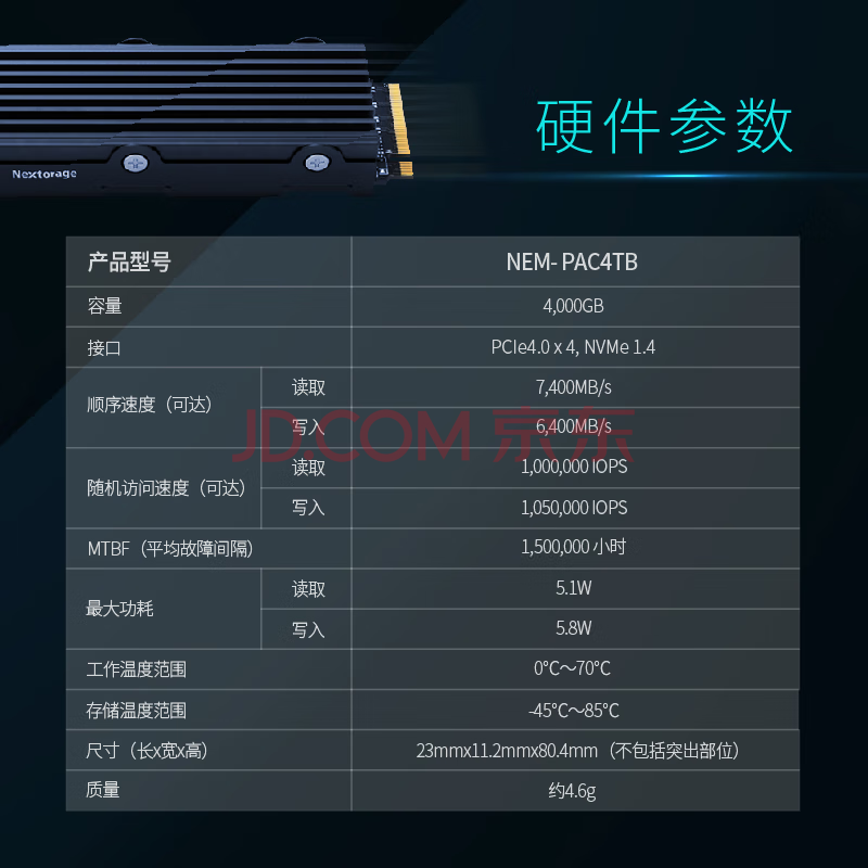 商品相册:Nextorage 4TB SSD固态硬盘 PS5扩展硬盘M.2接口(NVMe协议PCIe4.0) 带散热片NEM4TB第