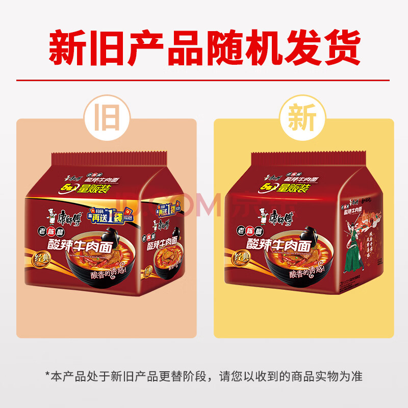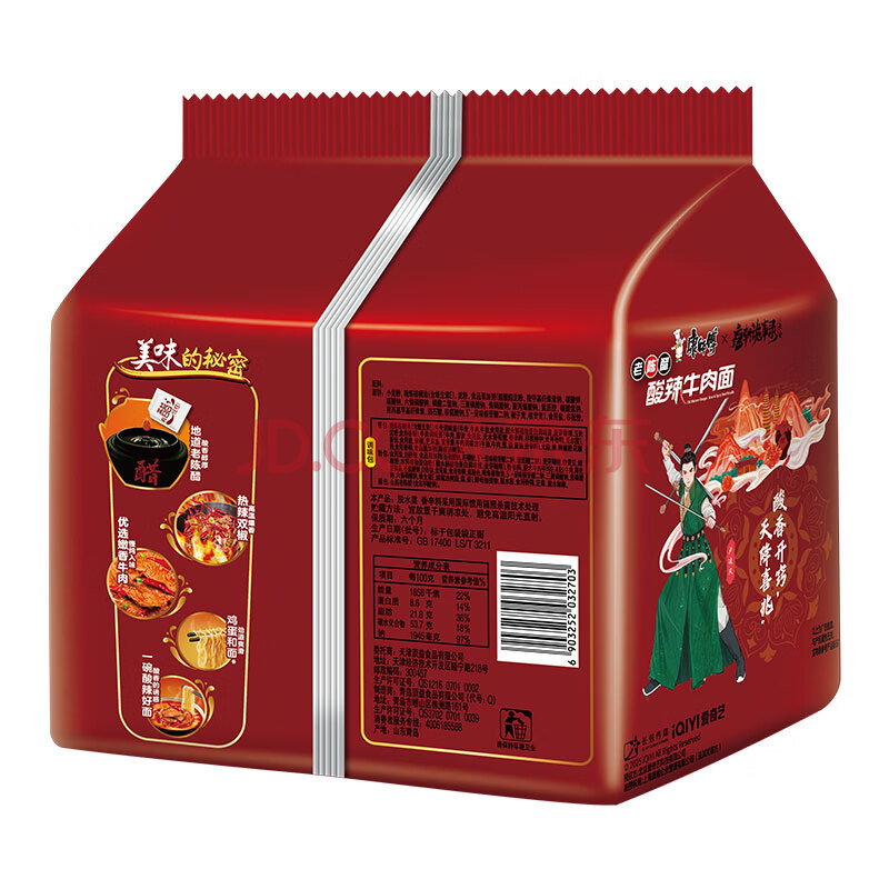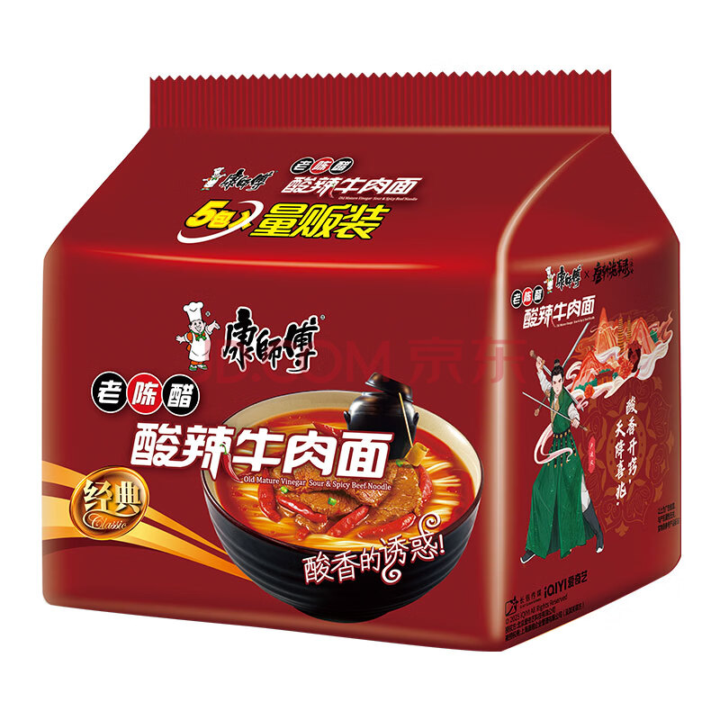 商品相册:康师傅 方便面 经典老陈醋酸辣牛肉面五连包110g*5 泡面袋装 方便食品第