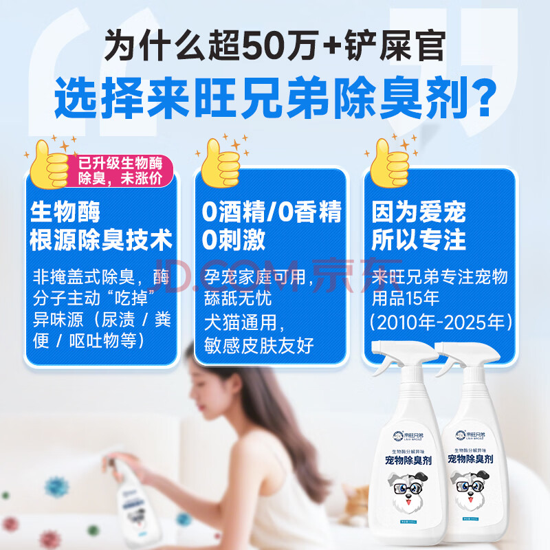 商品相册:来旺兄弟(L&W BROS.)生物酶宠物除臭剂猫咪狗狗除臭喷雾快速去尿味宠物用品500ml第