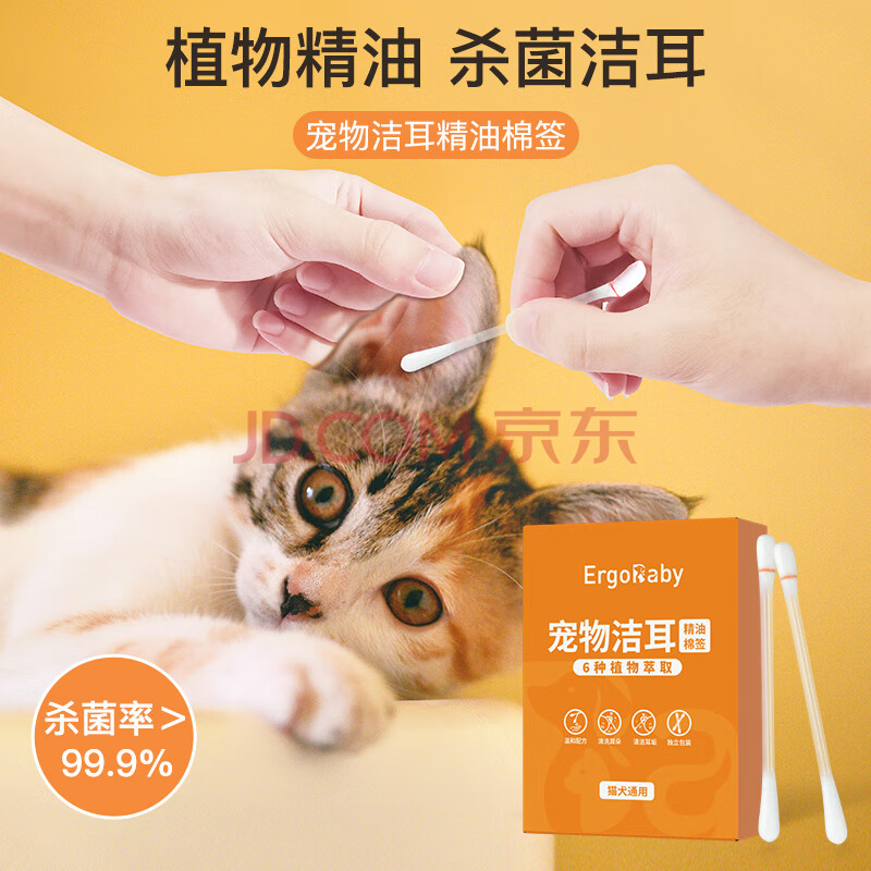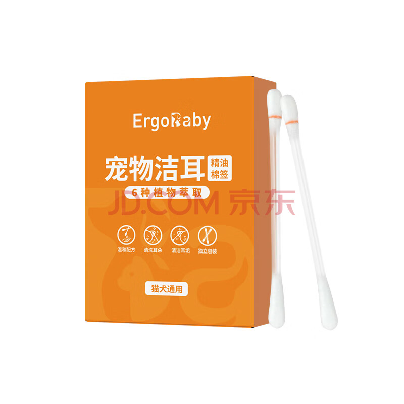 商品相册:ERGOBABY宠物耳朵清洁精油棉签猫咪狗狗洁耳棉棒耳道清洁用品40支/盒第