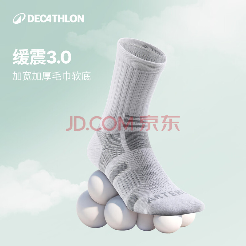 商品相册:迪卡侬运动袜高帮棉袜(3双)透气保暖长袜凑单ten 高帮长绒毛圈4018228第