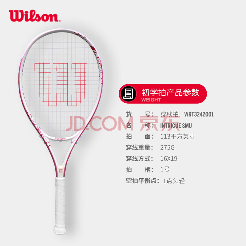 商品相册:Wilson威尔胜单人初学者网球拍轻巧减震女生入门 Intrigue WRT3242001第
