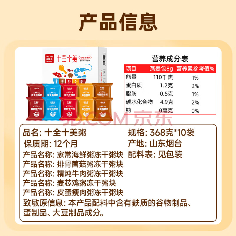 商品相册:海福盛速食粥早餐夜宵多口味组合腊八方便粥袋装礼盒粥368g10袋第