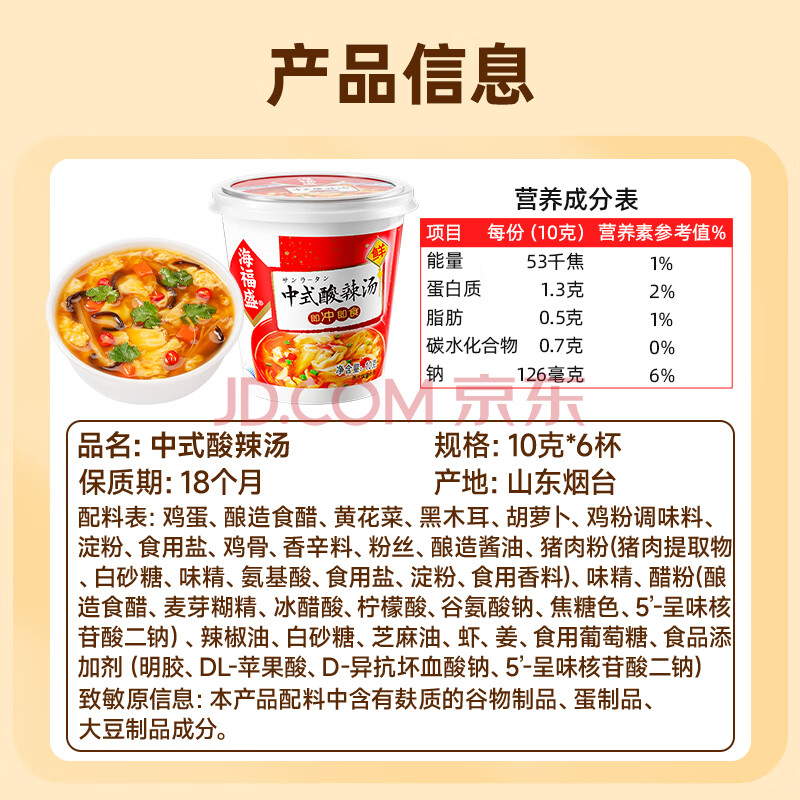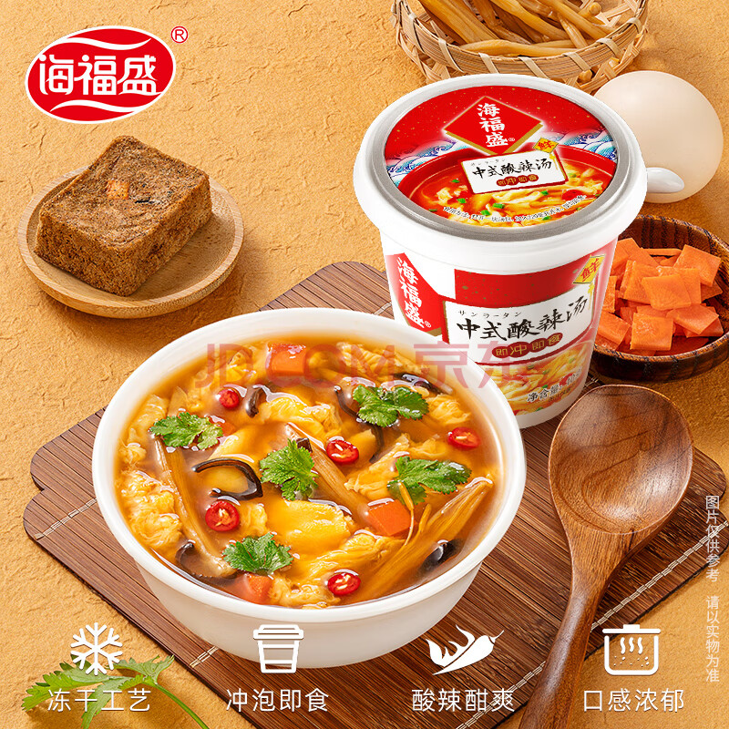 商品相册:海福盛方便食品速食汤免煮冲泡懒人早餐FD冻干汤中式酸辣汤10g*6杯第