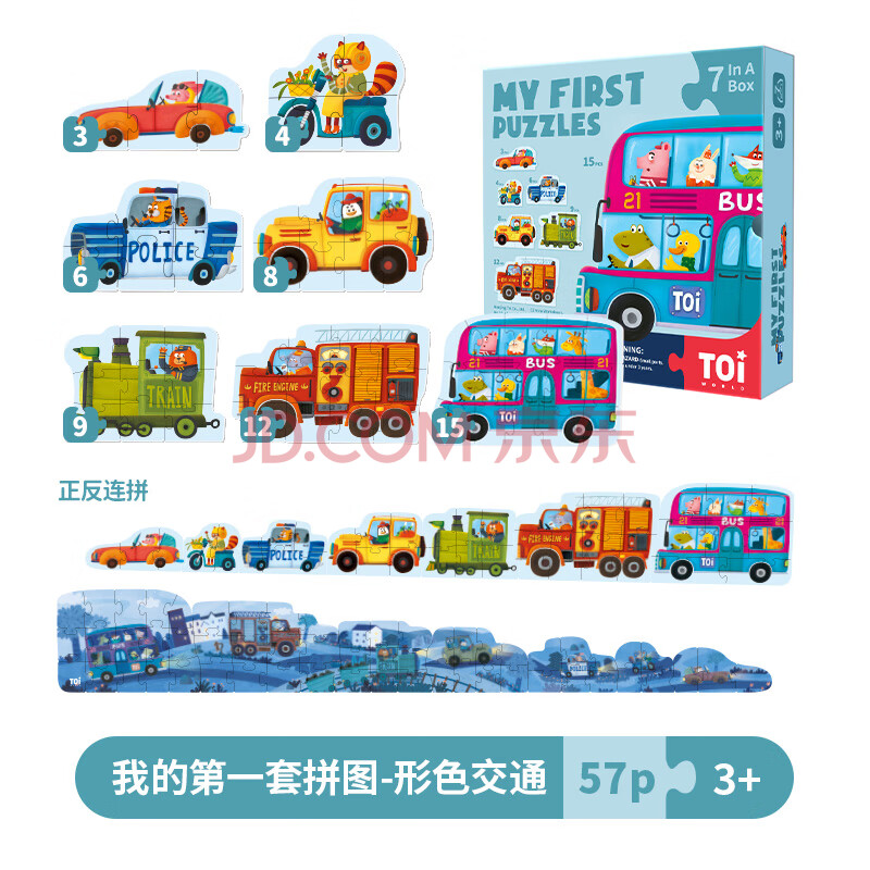 商品相册:TOI儿童拼图玩具早教大块纸质男女孩玩具生日礼物2岁宝宝 双面交通第