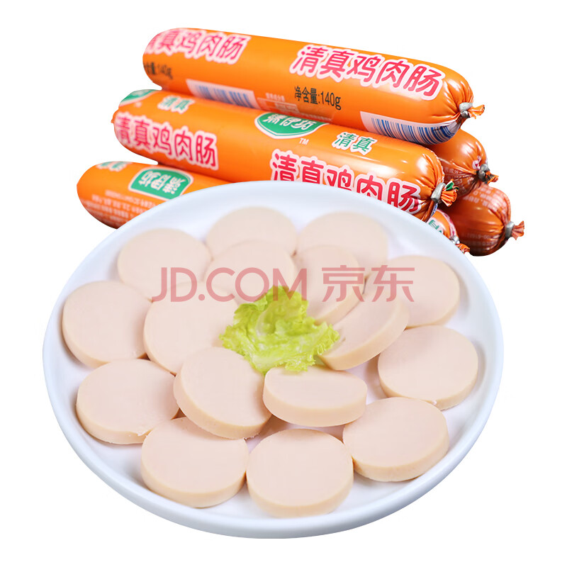 商品相册:双汇清伊坊清真鸡肉火腿肠香肠140g*18支 整箱 休闲零食 露营 速食第