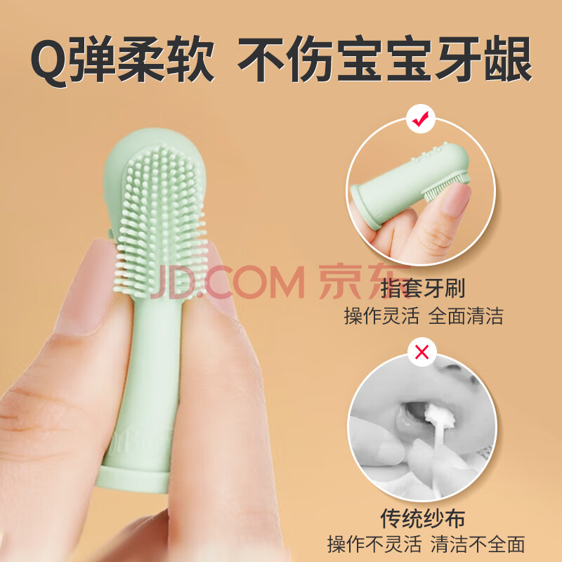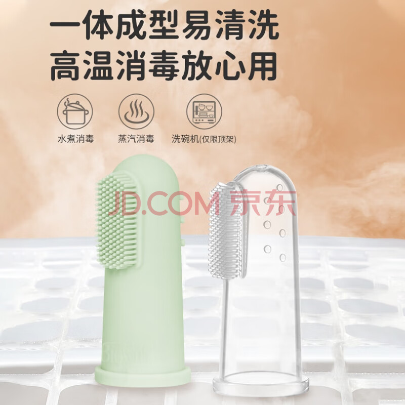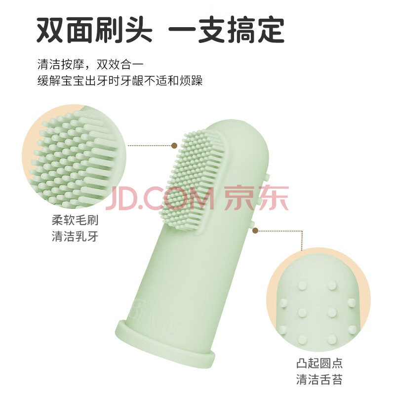 商品相册:布朗博士硅胶指套牙刷 新生儿舌苔清洁器 3-12个月软感护龈清洁(透明色)第
