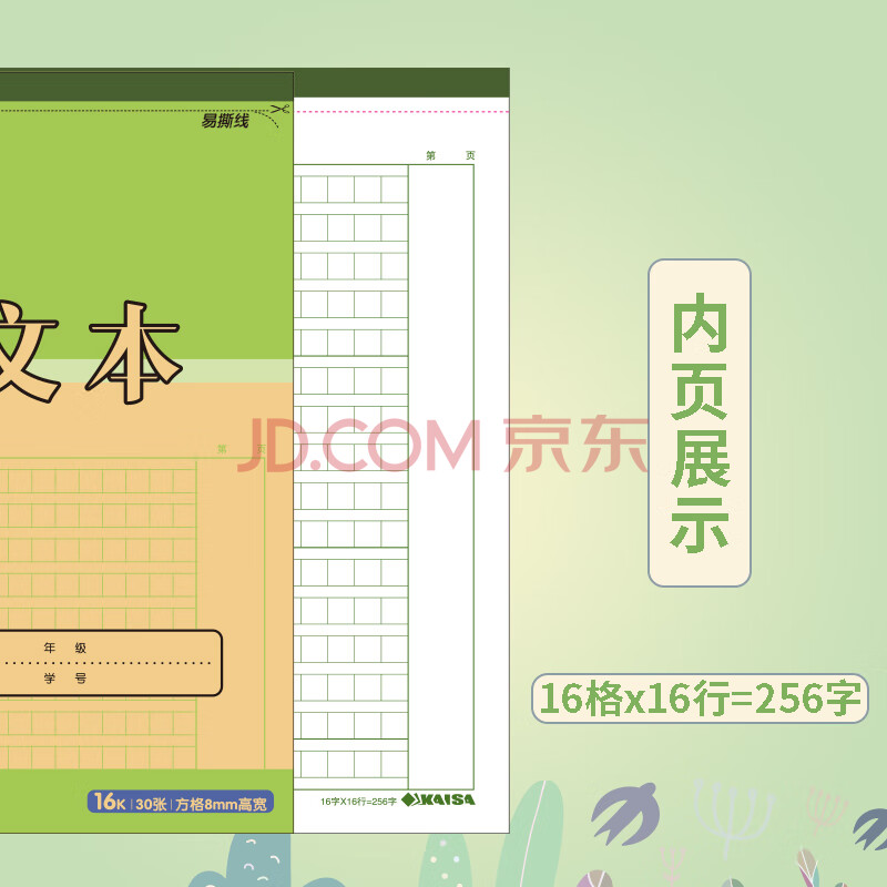 商品相册:凯萨(KAISA)16K/30张256格作文本语文练习本 上翻中小学生作业本笔记本本子作文纸文稿纸 5本装 第