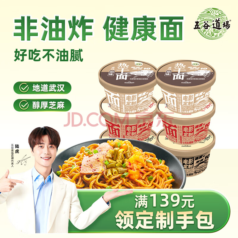 商品相册:五谷道場非油炸热干面 卤牛肉/香辣/原味 3口味组合265g*6盒 速食泡面第