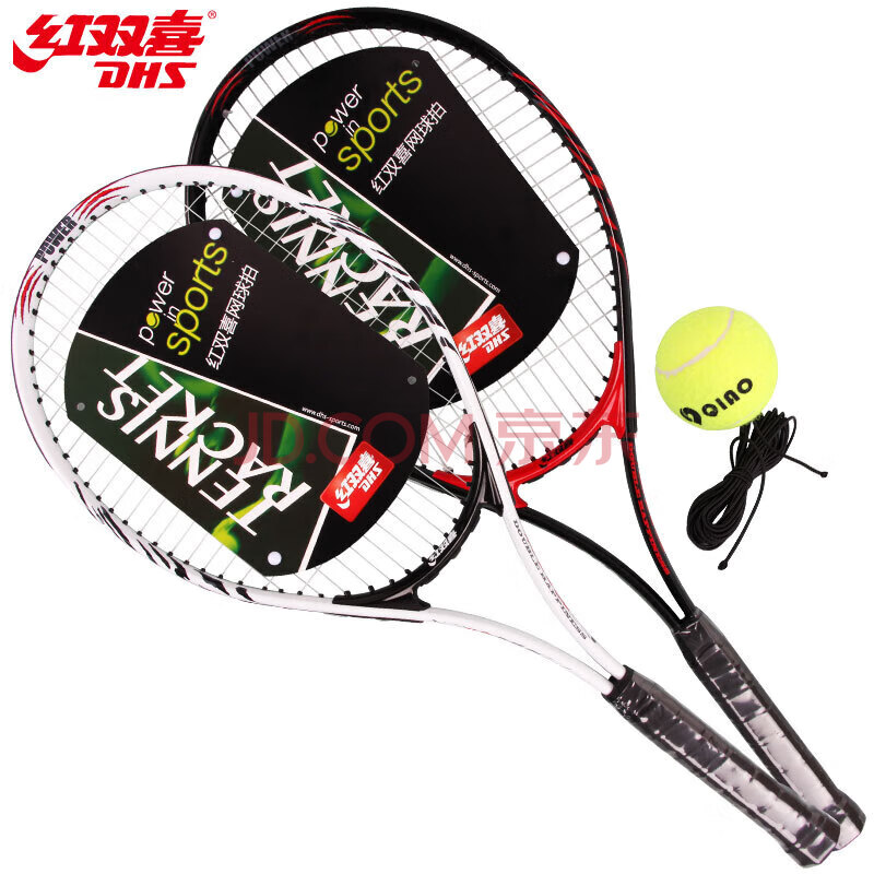 商品相册:红双喜网球拍对拍套装附网球回弹训练器手胶拍包铝合金双拍EG200黑白/黑红第