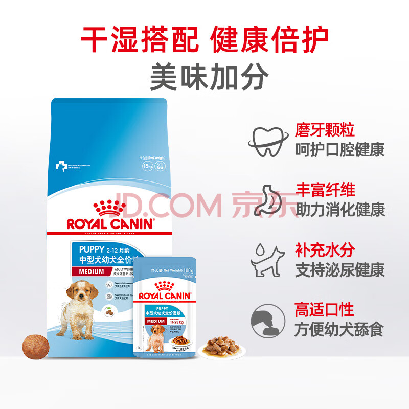 商品相册:皇家狗粮 幼犬狗粮 幼犬奶糕 宠物中型犬MEJ32全价犬粮2-12月15KG第