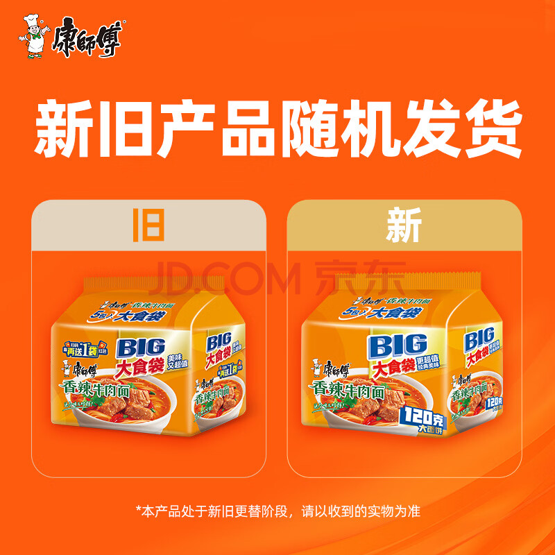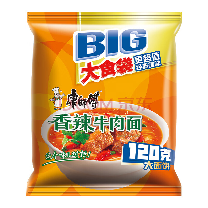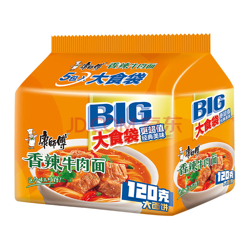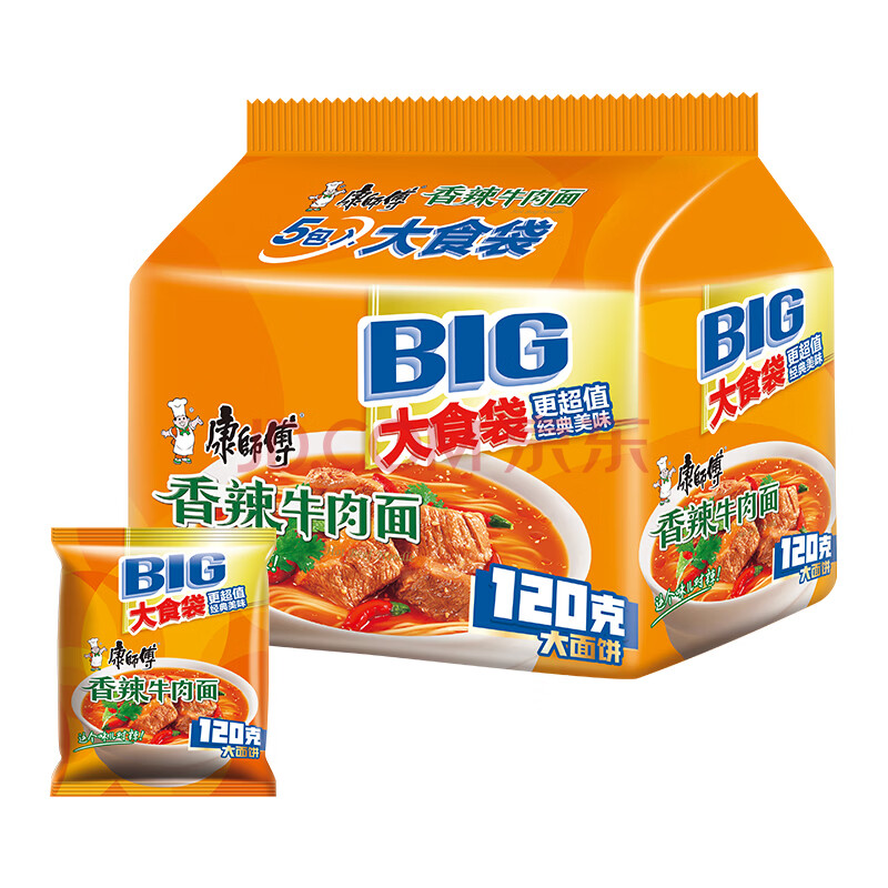 商品相册:康师傅 方便面 大食袋香辣牛肉面五连包144g*5 泡面袋装速食 方便食品第