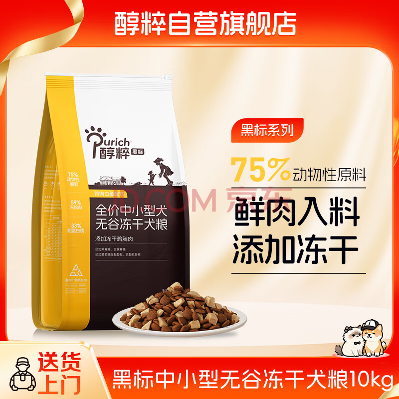 商品相册:醇粹黑标狗粮中小型犬 鸡肉冻干全价犬粮边牧比熊成犬幼犬通用型10kg第
