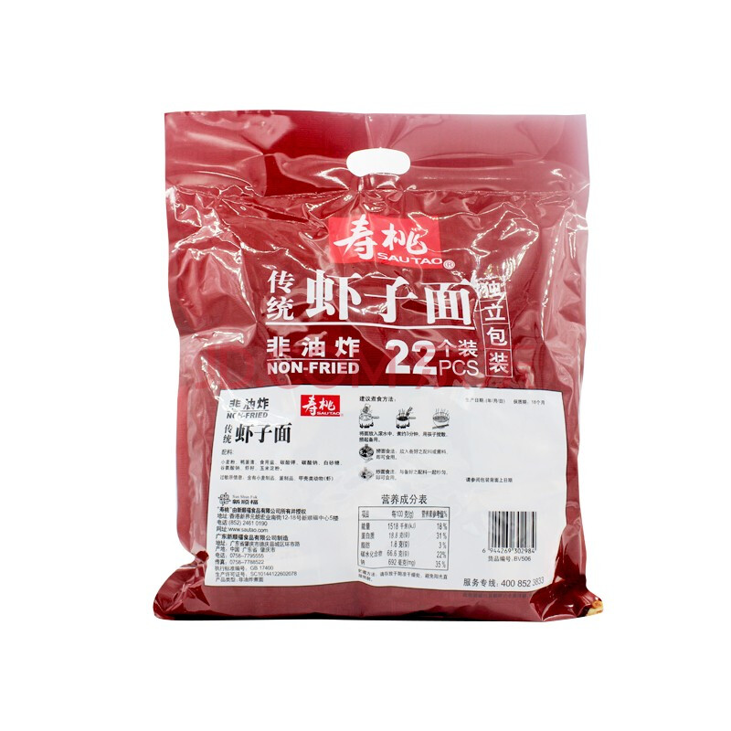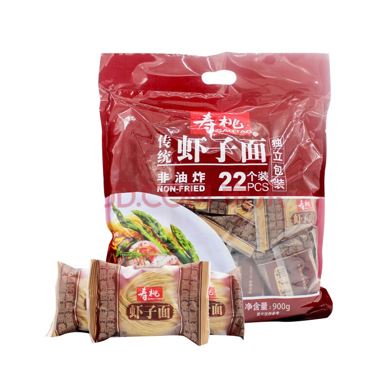 商品相册:寿桃港式虾子面传统手工碱水面条方便面早餐汤面独立包装22个装990g第