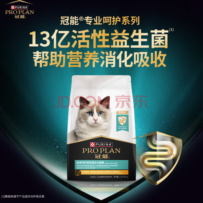商品相册:冠能猫粮 肠胃呵护成猫猫粮2.5kg 全价猫粮 添加活性益生菌 帮助消化第