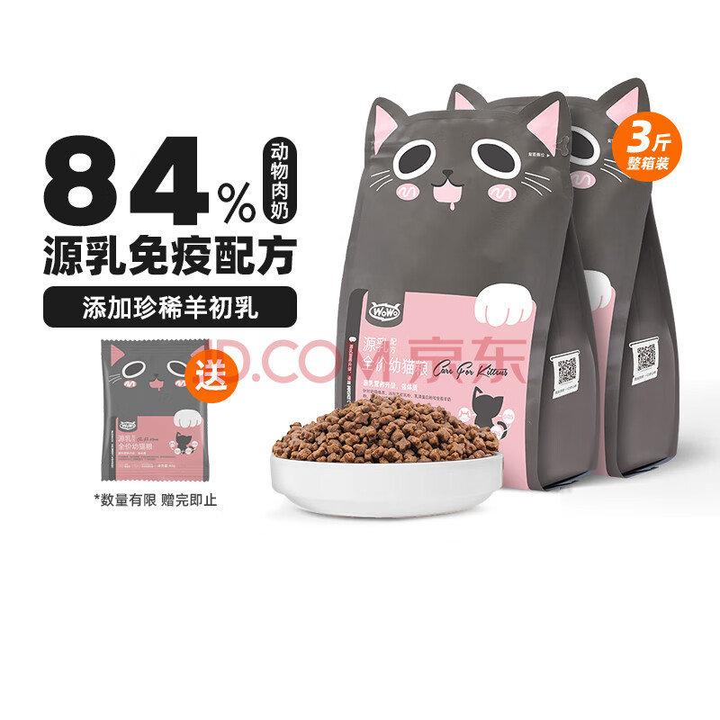 商品相册:WOWO猫粮幼猫粮 全价无谷源乳配方羊奶增肥奶糕猫干粮1.5kg 动物肉奶第