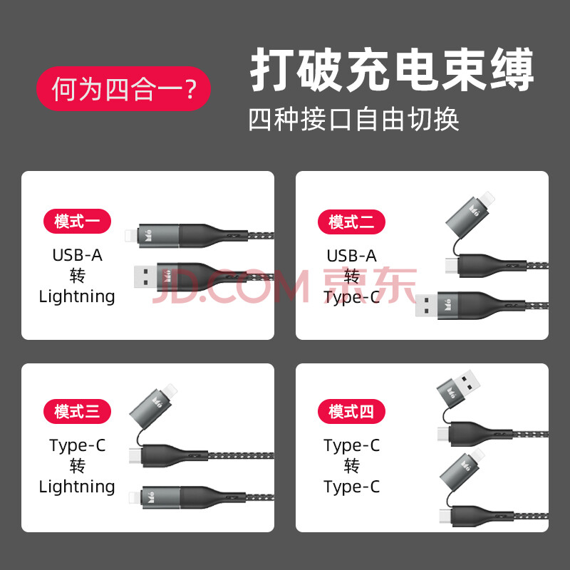 商品相册:魔栖60w双头typec苹果数据线三合一四合快充闪充适用平板ipad/iphone13pro/12/11华为小米oppo安卓手机充电线第