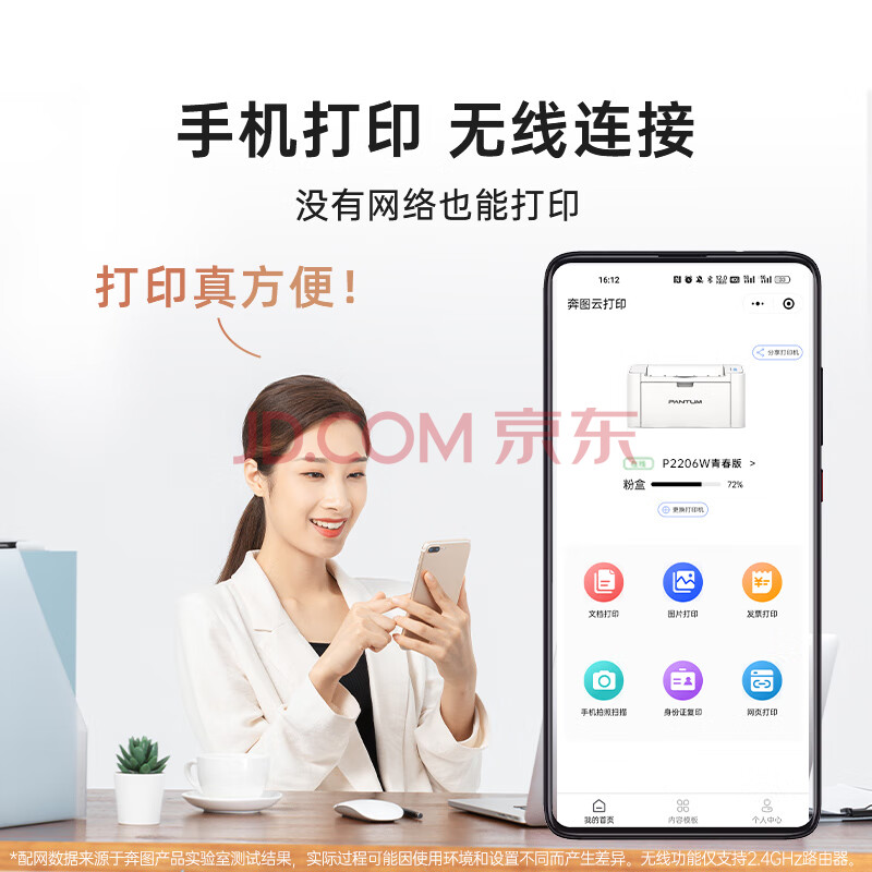 商品相册:奔图(PANTUM)P2206W青春版激光打印机家用 手机无线打印机 学生作业打印机黑白第