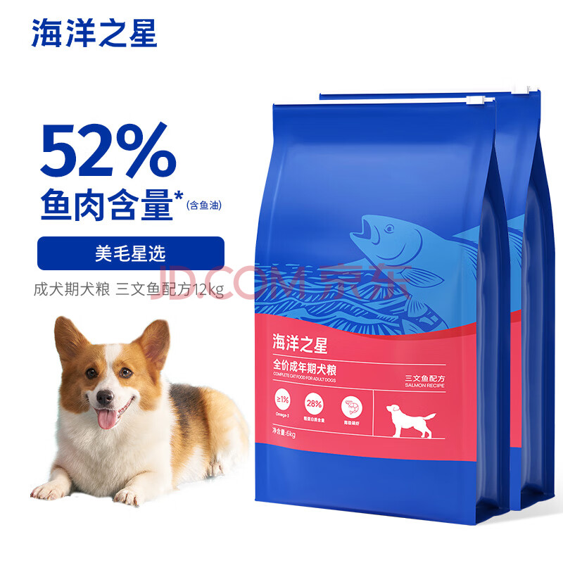 商品相册:海洋之星 三文鱼中小型犬狗粮金毛比熊边牧狗粮成犬小颗粒12kg(6kg*2)第