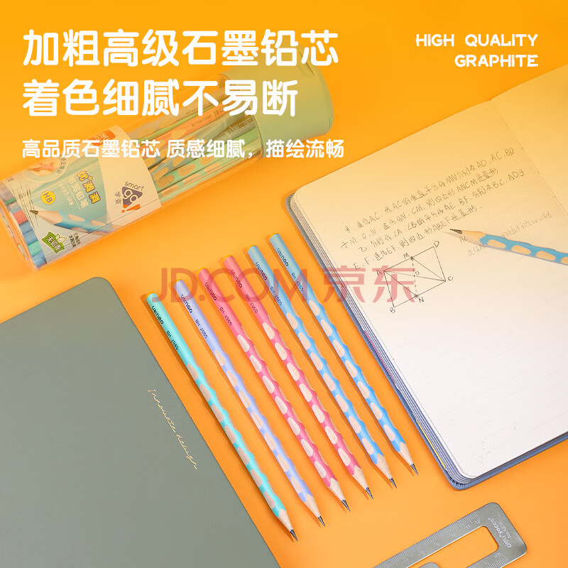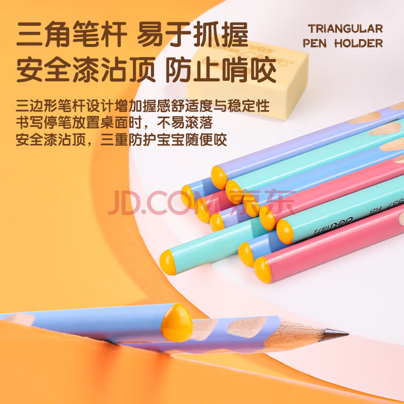 商品相册:得力(deli)洞洞笔铅笔30支HB三角杆7.2mm彩杆易抓握儿童书写矫姿学生练字笔S957-HB学生开学文具第