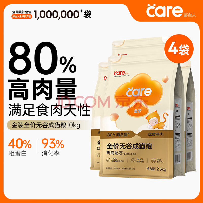 商品相册:好主人(CARE)金装好主人猫粮无谷猫粮全价成猫通用80%含肉量10kg【宠物金选】第