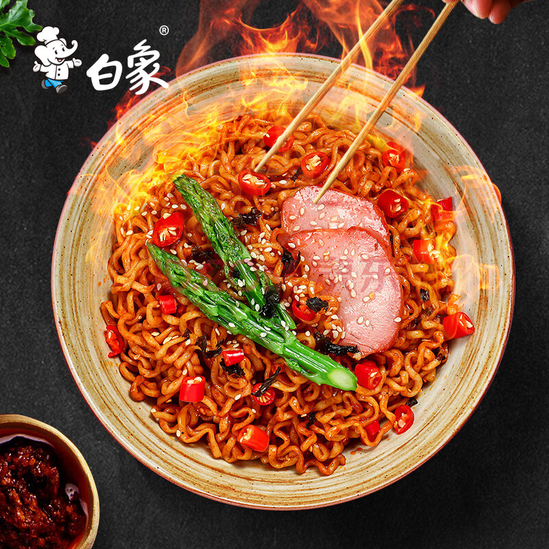 商品相册:白象 火鸡面大辣娇酸辣裙带菜火鸡拌面124g*5袋整箱装五连包第