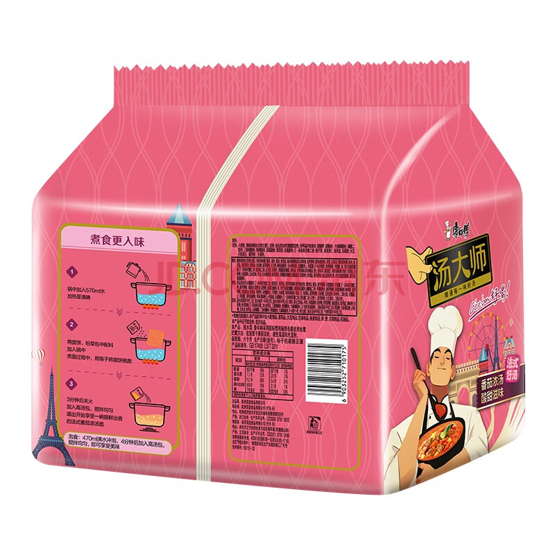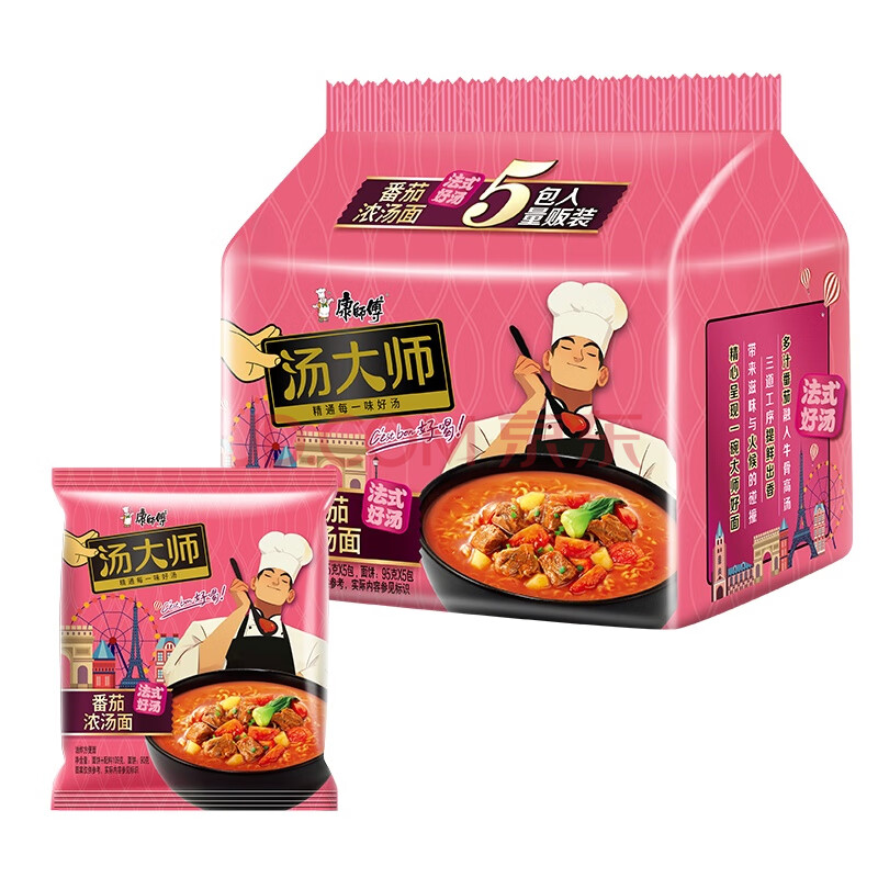 商品相册:康师傅方便面 汤大师 法式番茄浓汤面五连包119*5 泡面袋装速食 早餐第