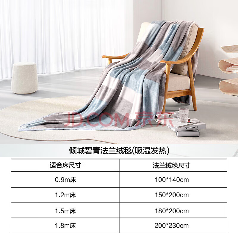 商品相册:水星家纺毛毯法兰绒毯冬季毛巾被保暖毯子床盖毯可机洗约2.3斤180×200cm第